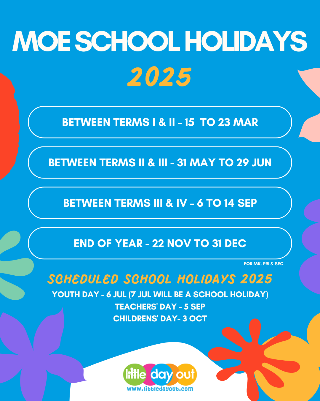 Please kindly check the following school holidays for year 2025.